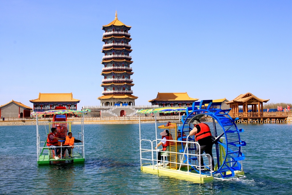 游客们正沉浸式体验水上娱乐项目,在碧波之上畅享欢乐。