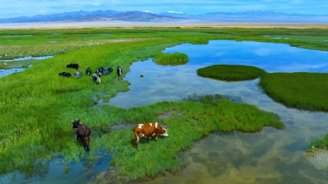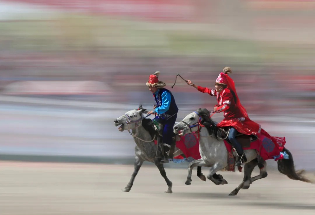 骆驼队驮着丰收的奶疙瘩穿行其间。