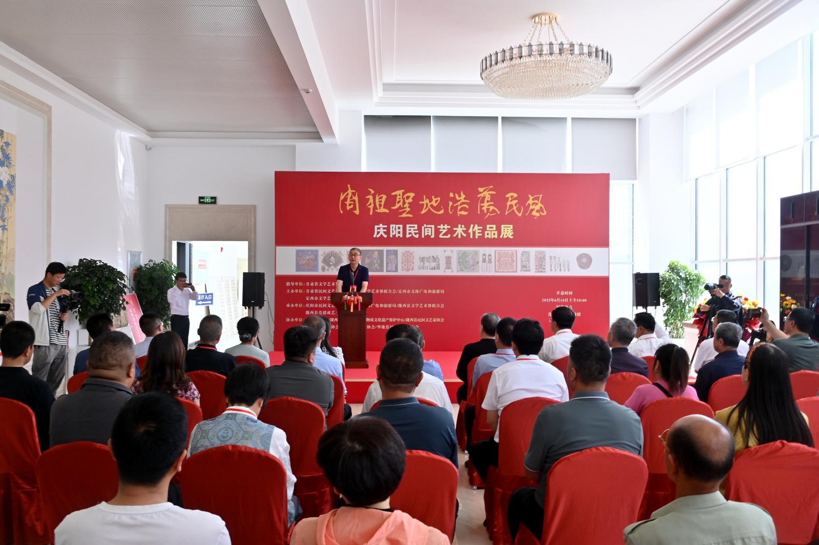 6月16日,由甘肃省文联指导,甘肃省民间文艺家协会、庆阳市文联以及定西市文体广电和旅游局、定西市文联等多家单位联合举办的“庆阳民俗文化艺术交流展”在陇西县莫建成艺术博物馆开幕。