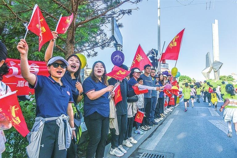 赛道两旁,观众挥舞着手中的旗帜,自发地组成啦啦队,用最热情的方式欢迎着来自五湖四海的选手,欢呼声、加油声、助威声此起彼伏、如潮如涌。