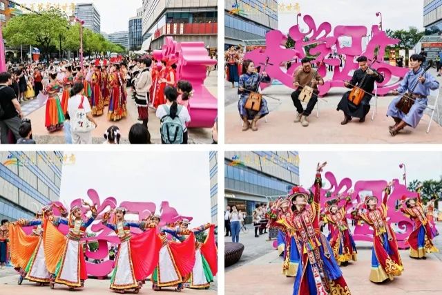丝路文化艺术浸润于街头巷尾,裕固族着民族盛装舞动大学路,阿克塞哈萨克族歌舞团唱起《牧羊马》,灵动的“伎乐飞天”于长阳创谷凌空舒展,重现千年敦煌神韵,蒙古族低沉浑厚的呼麦与悠扬的马头琴长调,引得围观人群自发形成环形人墙驻足观看,争相拍照合影。