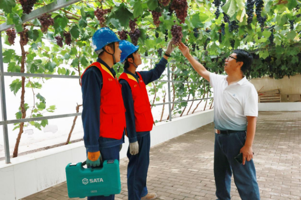 持续不断的电力供应对大棚葡萄种植尤其重要,大棚用电得不到保障,葡萄的产量、品质都会受到影响。为了更好地服务特色产业发展,该公司围绕特色产业用电需求,健全跟踪服务机制,在葡萄种植初期、灌溉等关键时间节点,采取“点对点”服务模式,组织台区经理上门走访,对基地的排灌增压泵、漏电保护器和电力线路进行巡视排查,针对检查中发现的问题,向大棚负责人提出整改意见,做到防患于未然,确保电力安全可靠供应,设施设备安全运行。