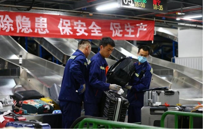 行李托运处也悄然变革,旅客只需平推,“地平式”无感自助值机托运一体化设备就能将托运行李无障碍送入传送带。同时,新系统将行李识别效率提升了40%以上,背后是RFID智能追踪技术编织的安心之网——即使远行千里,行李轨迹亦清晰可循。T3航站楼建设了长达10.38公里的行李处理系统,包含了自动分拣系统、早到存储系统、空框回收系统及行李全流程跟踪系统等子系统,同时采用了3DSCADA全景展示、数据中心智能运维等多项先进技术,构建了全新的生产保障,设备监控、智慧运维模式。该系统分拣效率可达6000件/小时至8000件/小时。通过首次规模化使用阻尼器的新型滑槽技术(联合专利产品),T3航站楼将行李破损率从0.43%降至0.27%,确保每件行李完好、准时送达。