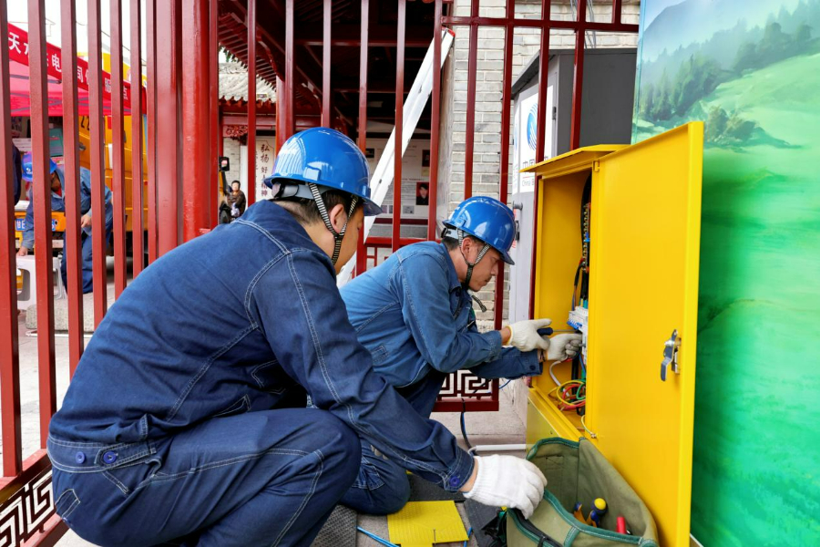 国网天水供电公司员工在公祭伏羲大典现场检查电力设备运行情况。李小强 摄