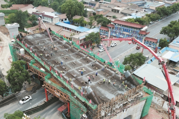 此次浇筑混凝土方量约1200立方米,施工组织难度大、作业时间长、跨路施工安全风险高。施工方精心策划,技术和测量人员全程跟踪监控,全力保障一次浇筑成型。浇筑完成后,将重点进行拱脚浇筑及拼拱支架安装,为7月的架梁通道打下坚实基础。 (记者 刘刚林 马茜)