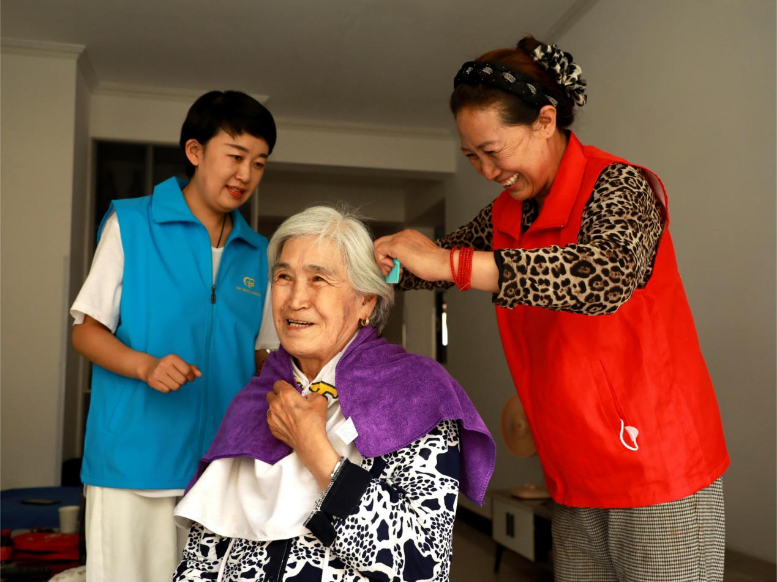 “奶奶我们该剪头发了!”下午四点的阳光斜照进窗,环县康润嘉园小区83岁的王桂花老人笑着打开门,仁爱社会工作服务中心志愿队三位服务人员提着工具箱走进屋内。剪刀的“咔嚓”声很快伴着欢声笑语响起,服务人员文乾宇利落地为老人系上围布,慕小兰则拿起扫帚开始打扫角落。