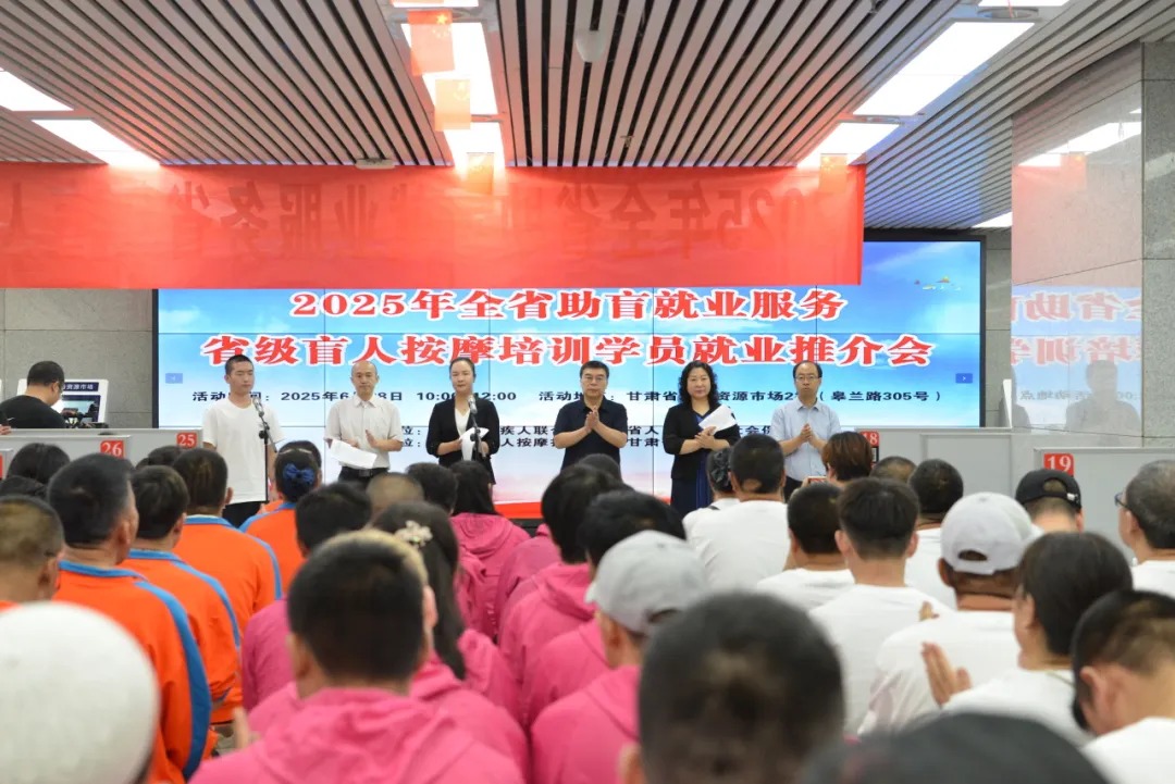 为认真落实全省“结对帮扶·爱心甘肃”推进会议精神,进一步推进就业助残行动,促进盲人高质量充分就业,6月28日上午,省残联、省人社厅在兰州市举办了2025年全省助盲就业服务省级盲人按摩培训学员就业推介会。