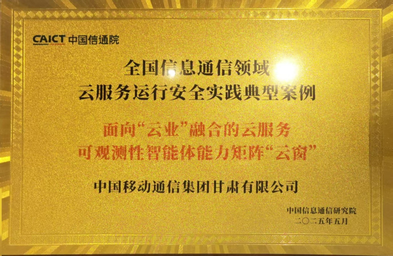 近日,中国信息通信研究院公布了2024年度《信息通信网络运行安全管理年实施方案》云服务安全专项治理实践典型案例等遴选结果。中国移动甘肃公司作为省内唯一获奖单位,在云服务运行安全领域荣获两项全国性奖项,《甘肃移动云服务运行安全实践案例》荣获全国云服务运行安全“先进级”实践典型案例奖,《甘肃移动面向“云业”融合的云服务可观测性智能体能力矩阵“云窗”》荣获全国信息通信领域云服务运行安全创新成果奖,标志着该公司在云服务安全技术创新与实践应用方面达到行业领先水平。