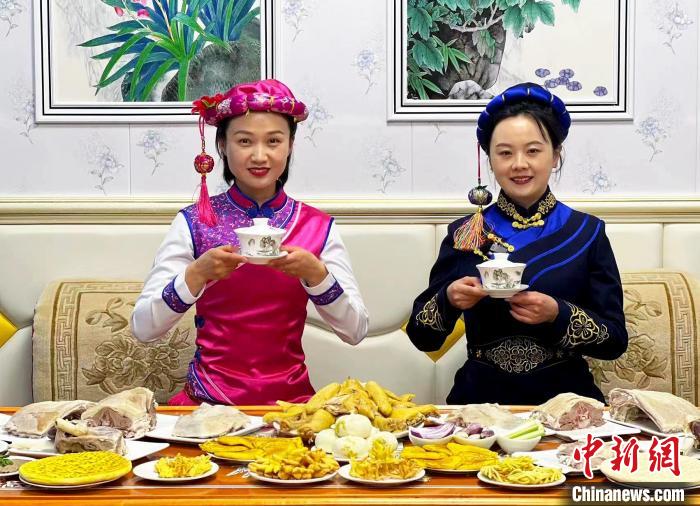 东乡族姑娘展示当地特色饮食。(资料图)东乡县融媒体中心供图