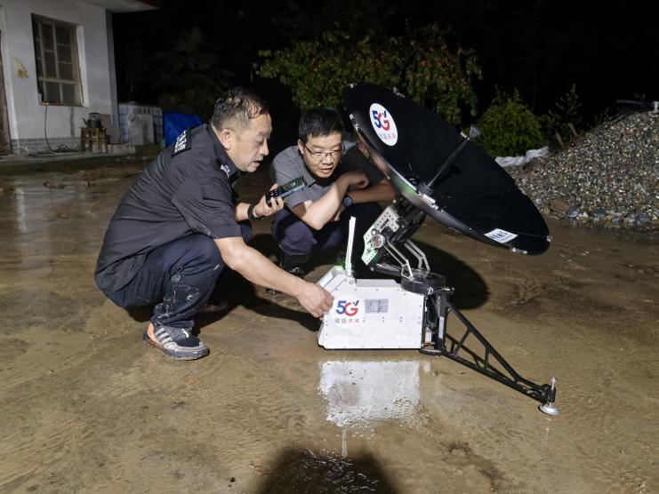 当晚23时02分,大庄村村委会开通第一台卫星背包基站