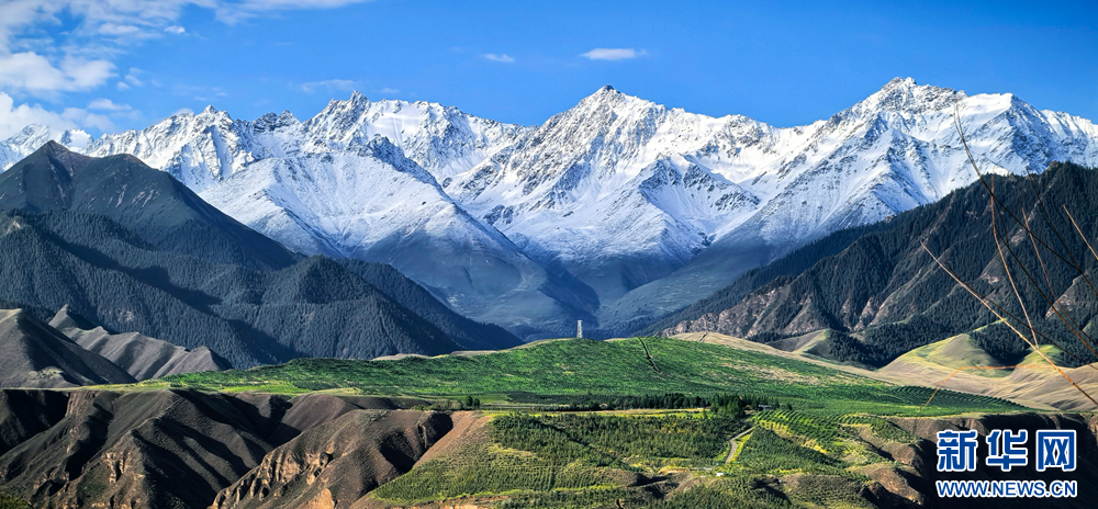 7月3日,一场雨雪后的甘肃省张掖市肃南裕固族自治县,碧空如洗,流云舒卷。一眼望去,祁连山北麓的山峦与草原层次分明,雪山下沃野如毯,展现了肃南“一山有四季,十里不同天”的独特气候魅力。(武雪峰)