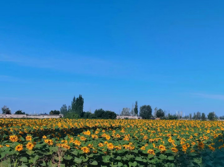 二道沟村党支部书记陈金龙说:“目前葵花长势良好,预计8月中旬就能迎来丰收。村里通过‘党支部+合作社+企业+农户’的模式,实现了规模化种植。”这种创新模式不仅提高了经济效益,还带动了乡村旅游的发展。陈金龙笑着说:“花开时节,每天都有不少游客来拍照打卡,村里热闹得很。”