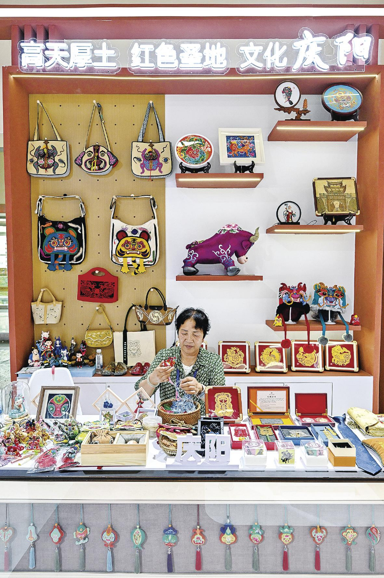 位于非遗文创馆的庆阳展区特色鲜明、亮点突出,集中展示了香包绣制、剪纸、皮影、面塑、布贴画等五类非遗代表性项目及100余件传统与创意融合的展品。通过静态展示和活态展演,既体现了传统技艺的守正传承,又彰显了陇东文化的深厚底蕴,更展现出庆阳将非遗融入现代生活的创新发展。(庆阳融媒记者 俄少飞 摄)