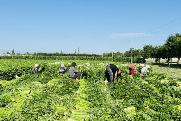 甘肃华中农业发展有限责任公司经理魏政峰介绍道:“咱们华中农业2025年在前进村流转土地300亩左右,大量种植的是水果芹菜。现在是咱们的水果芹菜的一个收获季,每天的用工量都达到六七十人,人均工资达到280-350左右,为当地的群众提供了一个很好的就业机会。”