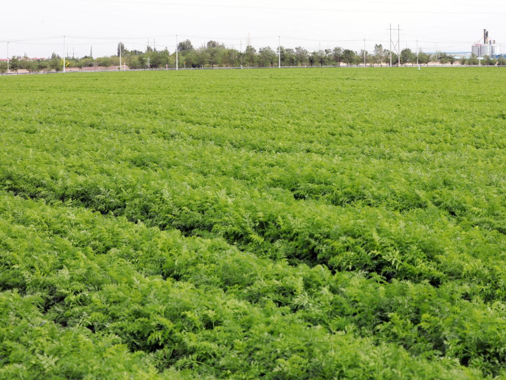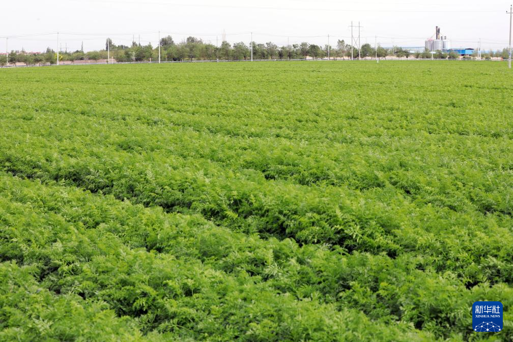 在古浪县永丰滩镇的一处高标准农田里,大片茴香长势良好,郁郁葱葱。新华社记者 郭刚 摄