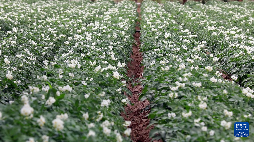 在古浪县黄花滩镇的一处高标准农田里,大片马铃薯生长进入花期。新华社记者 郭刚 摄