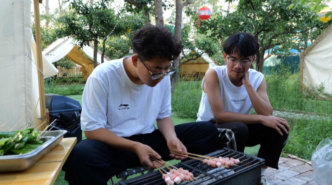 游客们在这里开启了欢乐的旅程,烧烤区炭火正旺,滋滋作响的烤串散发着诱人的香味,引得人垂涎欲滴。游客刘昊昌和朋友围坐在一起,一边翻动着烤串,一边谈笑风生。