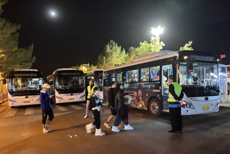 这场免费公交服务的背后,是敦煌对“宾至如归”理念的生动诠释。当车轮碾过夜色,车厢里响起的不仅是发动机的轻鸣,更有来自五湖四海的赞叹:“连返程都安排得这么贴心,敦煌是把善意刻进骨子里了!”有游客在朋友圈晒出窗外掠过的灯火,配文“星空下的歌声难忘,星光里的送别更难忘”。