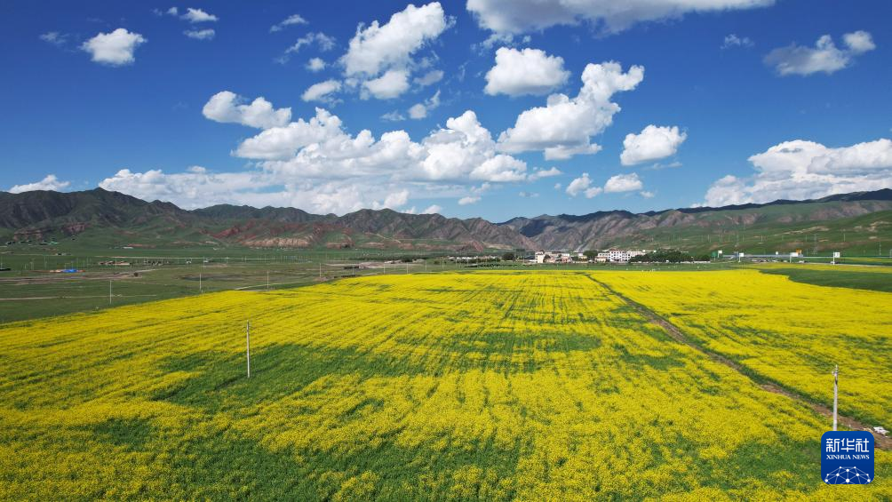 7月10日在桑科草原拍摄的油菜花海(无人机照片)。新华社记者 鱼澜 摄