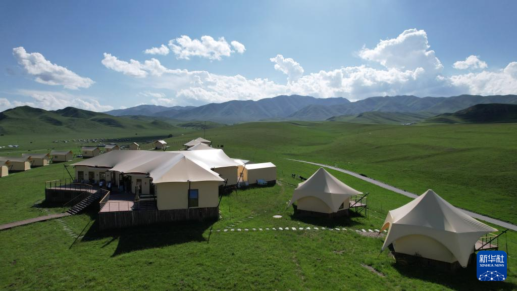 7月10日在桑科草原拍摄的天境营地(无人机照片)。新华社记者 鱼澜 摄