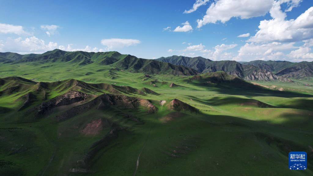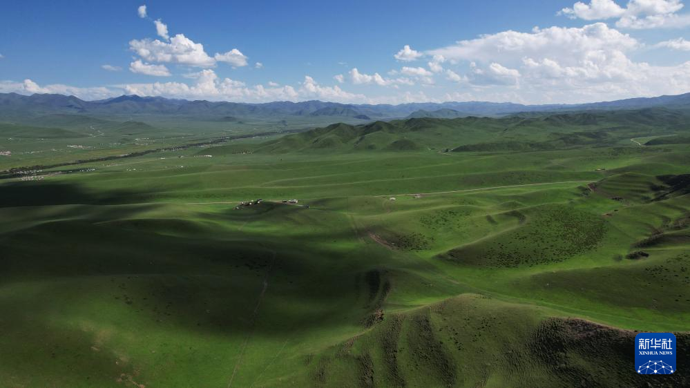 7月10日拍摄的桑科草原风光(无人机照片)。新华社记者 陈斌 摄