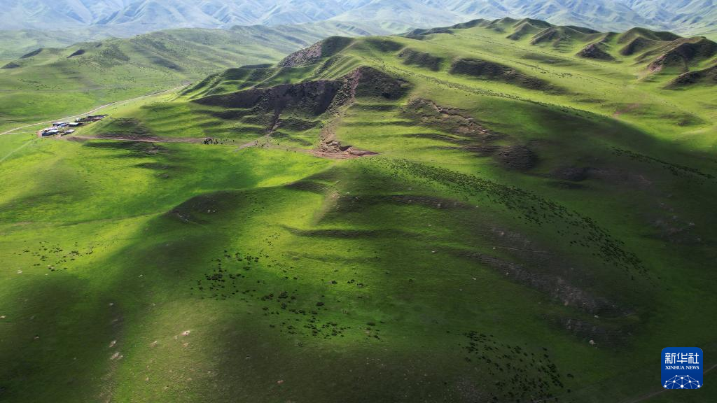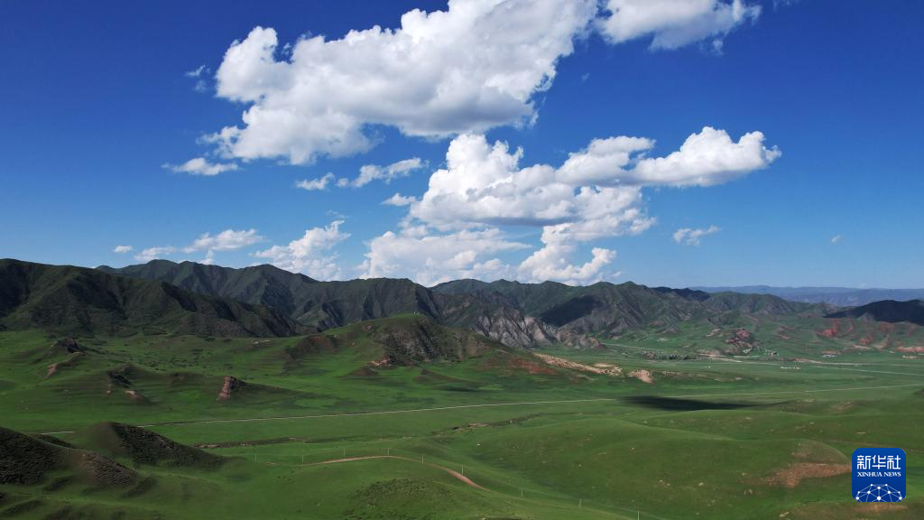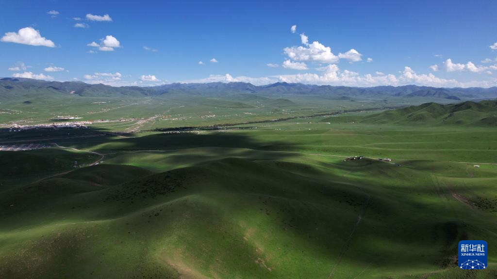 7月10日拍摄的桑科草原风光(无人机照片)。新华社记者 鱼澜 摄