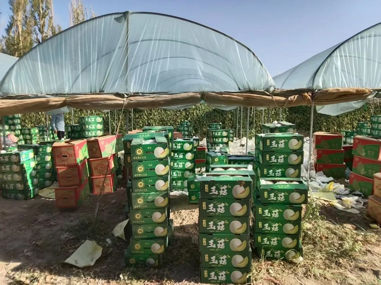 “家人们看过来,这就是咱们瓜州镇的玉菇蜜瓜,现摘现发,咬一口软糯绵密,甜到心里。”线上直播间里,主播热情地向网友们推介。线下,一箱箱包装完好的玉菇蜜瓜被装上货车,飞向全国各地消费者的餐桌。