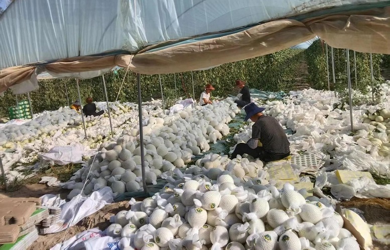 “这些装车的蜜瓜马上就要发往北京、成都、西安等地,得保证每一个瓜的品质。”负责发货的工作人员马超一边检查瓜的品相一边说。