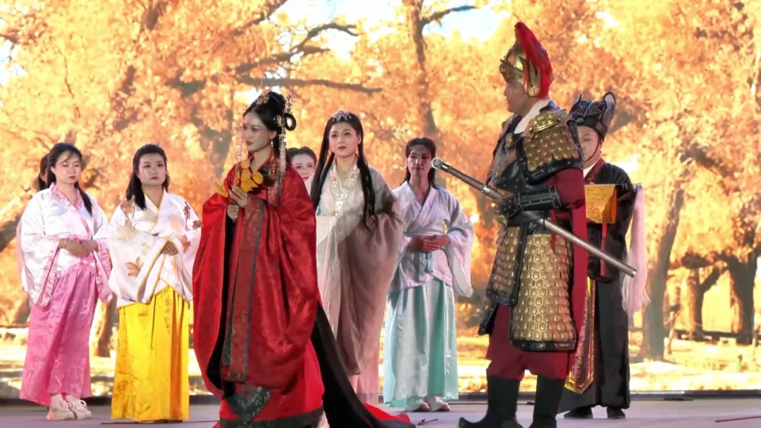 6月25日晚,原创舞剧《会水长歌》在夜空下上演,市民扶老携幼、全城围观。这部剧以张骞出使西域、解忧公主和亲等历史片段为线索,生动展现了千年丝路精神与金塔会水古城的文化渊源。演出宏大精湛,掀起了夜间精神供给的高潮。