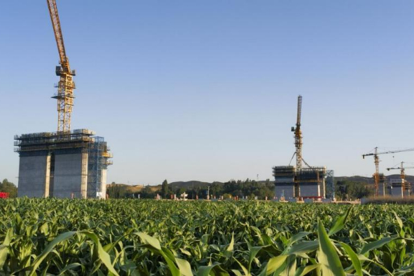 在大桥箱梁预制厂,50多名工人正在挥汗如雨,扎钢筋、浇筑横梁。水范2标施工单位负责人周文峰说,“工地上推行计件工资制,工人们积极性很高,劳务队里每月最多的可拿13000多元,低的也有6000多元,从没有拖欠过。最近气温非常高,我们特别注意防暑降温,实行了错峰施工和两班倒。”