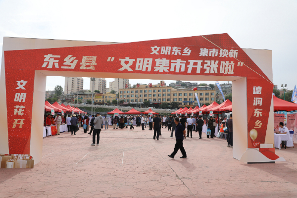 7月17日上午,东乡县体育场门前的便民市场和体育场内的文明集市热闹非凡,商贩吆喝声、集市喧嚣声不绝于耳,政策宣讲声、群众欢笑声相伴相融,让大家既逛了百货市场也逛了文明集市。
