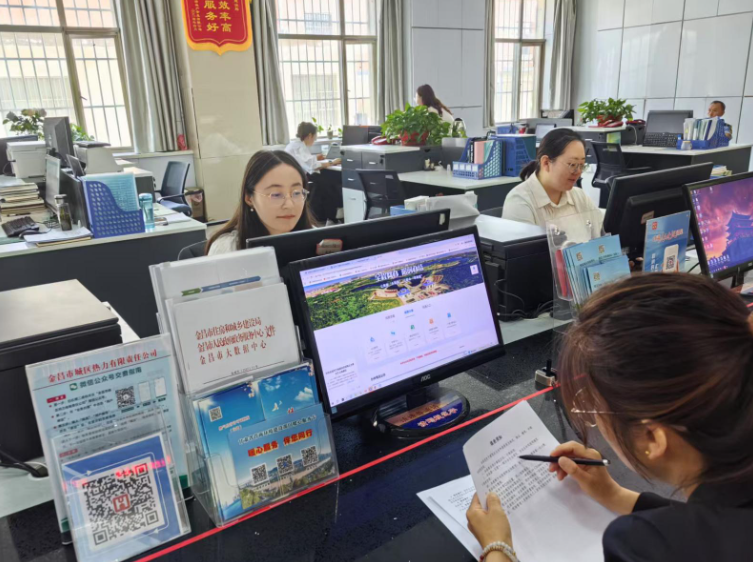 市住建局窗口工作人员通过新系统为项目建设单位办理业务