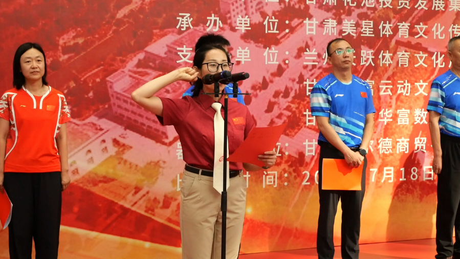 7月18日上午,首届“南梁杯”乒乓球邀请赛在甘肃省华池县第一中学体育馆开幕。