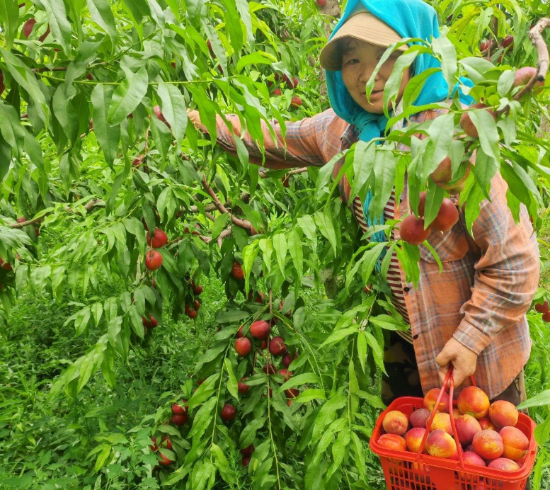 仲夏时节,瓜州县南岔镇九南村的桃园迎来丰收旺季,一颗颗红彤彤的桃子像小灯笼似的挂满枝头,饱满圆润的果实在阳光下泛着诱人光泽,清甜气息中满是沉甸甸的喜悦。