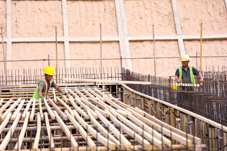 巨大的碾压机械在坝体上来回穿梭,排水沟浇筑作业现场工人们细致地进行模板支护、混凝土浇筑,钢筋焊接火花在阳光下闪烁……盛夏七月,骄阳似火,持续的高温天气给户外作业带来严峻“烤”验。在环县刘园子煤矿矿井疏干水综合利用项目建设现场,工人们头顶烈日,加紧生产,全力推动项目建设不停步、不减速。