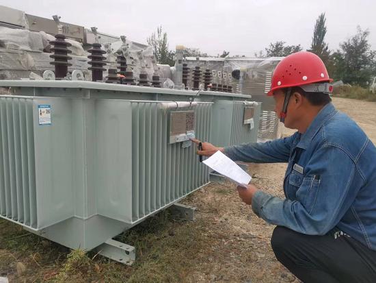 国网礼县供电公司合同履约人员正在现场材料站核对到货配电变压器实物ID信息