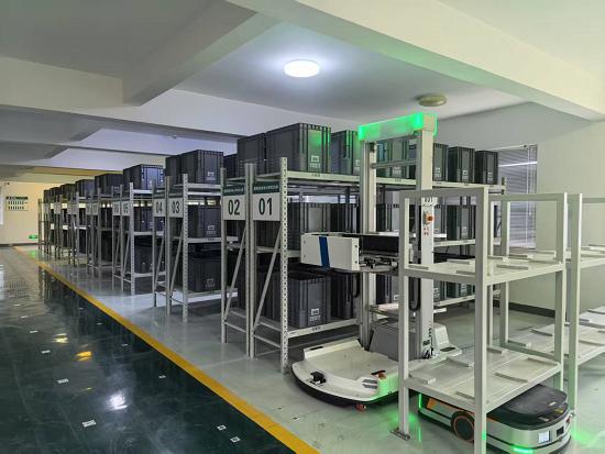 陇南成县邵总仓库AGV机器人正在执行自动搬运装卸物资指令