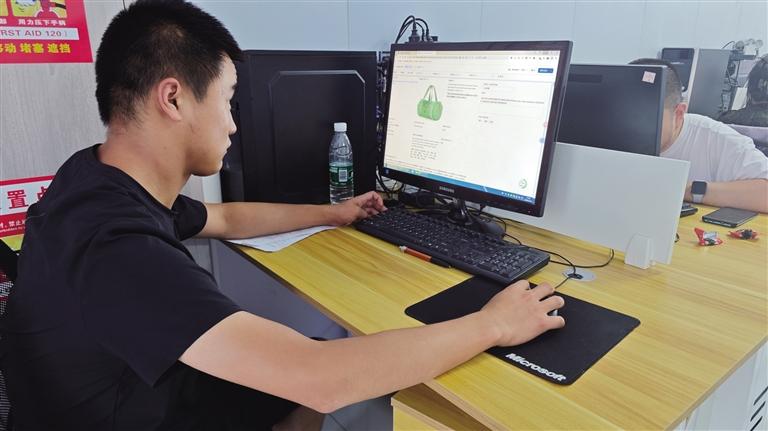 7月20日,在兰州市心连心社会工作服务中心就业工坊中,26岁脑瘫青年毛瑞兵正聚精会神地坐在电脑前,用不太流利的右手操作着鼠标,将一张张照片上的衣服、包等商品的信息框选出来、标记核对。