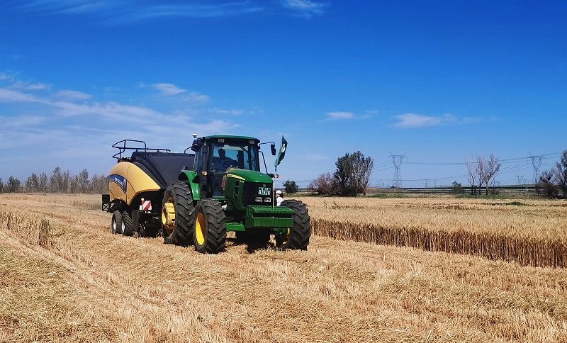 “今年我们用农机购置补贴,新增了1台大型联合收割机和1台秸秆打捆机,并在夏收前对所有设备进行了全面检修。现在每天能收割200多亩,效率是人工的20倍!预计7月31日前完成全部收割工作。”布隆吉乡鸿文农机农民专业合作社负责人沈鸿文介绍道。