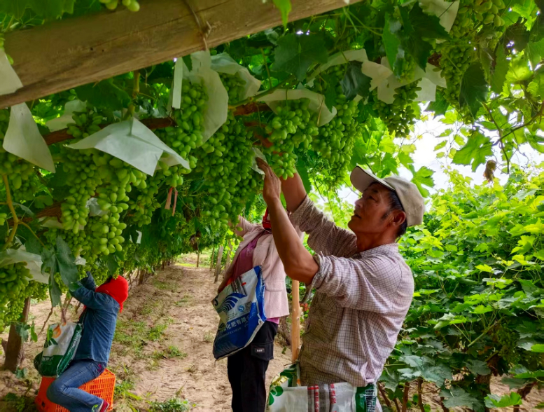 走进葡萄种植基地,连片的葡萄架下,沉甸甸的果穗压弯了藤蔓,阳光透过叶片洒在果实上,折射出诱人的光泽。田间连片的标准化避雨设施为葡萄撑起“防护伞”,将自然降水可能引发的裂果、霉变等生长风险稳稳阻隔。科学精细的水肥管理体系,不仅让每一株葡萄都长得茎秆粗壮、叶片浓绿,更让串串果实疏密有致、大小匀称。