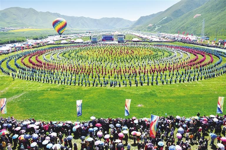 碌曲县万人锅庄展演。