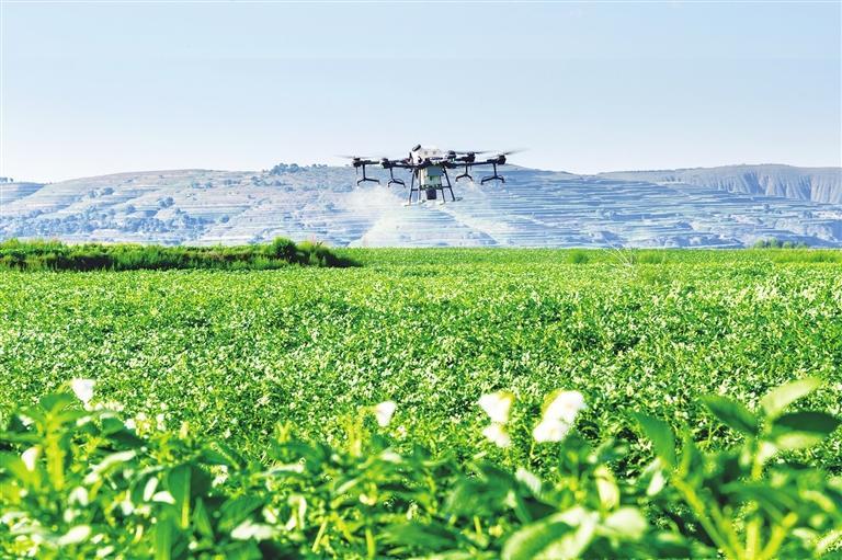 定西马铃薯标准化种植基地的无人机作业场景。杨大巍