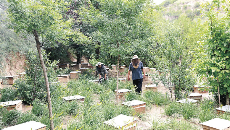 近日,走进华池县白马乡,青山环抱、绿树成荫,郁郁葱葱的山林间,错落有致地摆放着一个个蜂箱,马高庄村村民穿梭在林间忙着放蜂采蜜,构成了一道乡村丰收的动人风景。