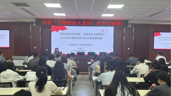 为进一步推进“八五”普法规划深入实施,有效增强普法工作的针对性实效性,近日,全省“百场法治大宣讲”安宁区报告会在甘肃省兰州市安宁区委党校举办。