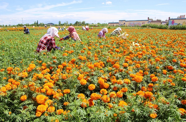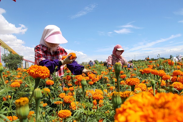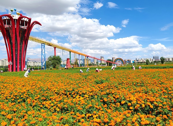 万寿菊具有生长周期短、花期长的显著优势,其花瓣中富含的叶黄素被广泛用于食品、医药及化妆品领域,具有极高的经济价值和市场潜力。今年,山丹县依托如意花海、彩虹玻璃栈道等旅游资源,以“花旅融合”为发展思路,大规模种植万寿菊,金色花海与自然风光相互映衬,成为游客打卡拍照的热门地,进一步提升了旅游吸引力。同时,万寿菊种植、管护和采摘等环节催生季节性就业岗位,带动100余名附近村民就近务工,实现了“美丽资源”与“美丽经济”的双收益。(王国静)