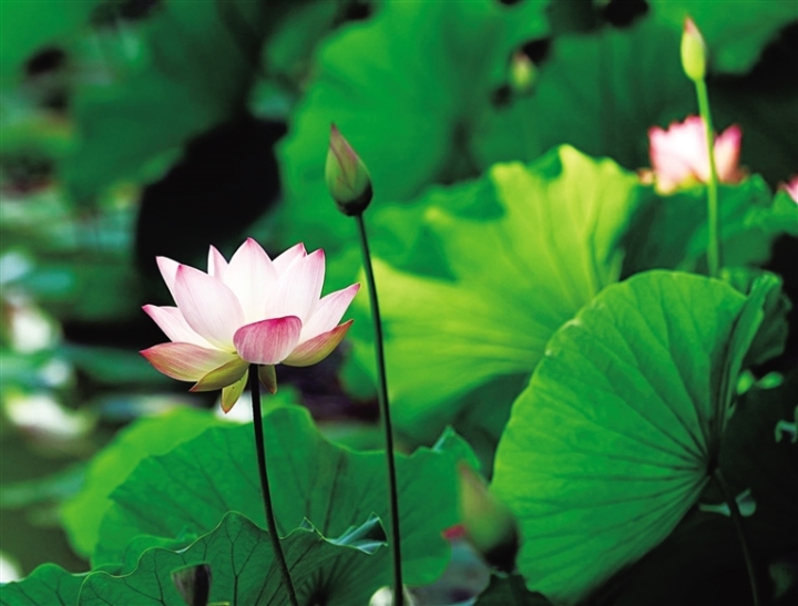 盛夏,西汉酒泉胜迹景区的荷花如期绽放。泉湖北岸的荷塘里,层层叠叠的荷叶如碧波荡漾,粉白相间的荷花亭亭玉立。微风过处,清香徐来,呈现了“接天莲叶无穷碧,映日荷花别样红”的绝美意境。