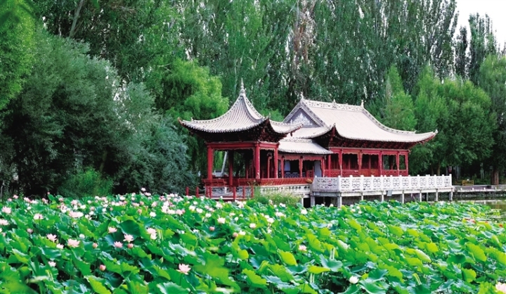 这个夏天,不妨来西汉酒泉胜迹赴一场荷塘之约,让满塘清荷为您驱散暑热,在暗香浮动中感受属于酒泉的夏日浪漫。