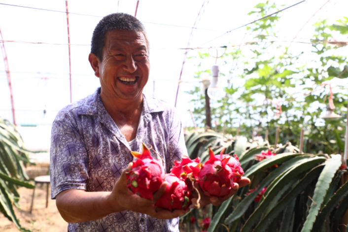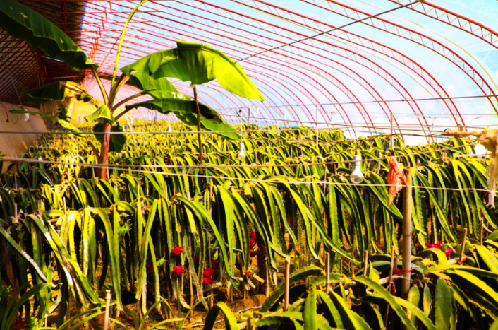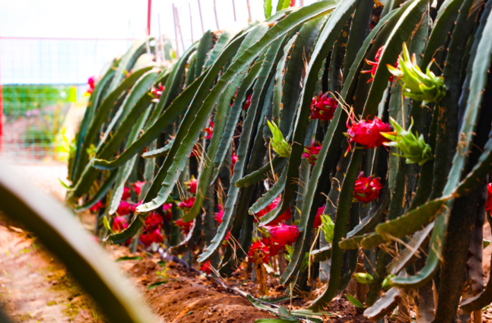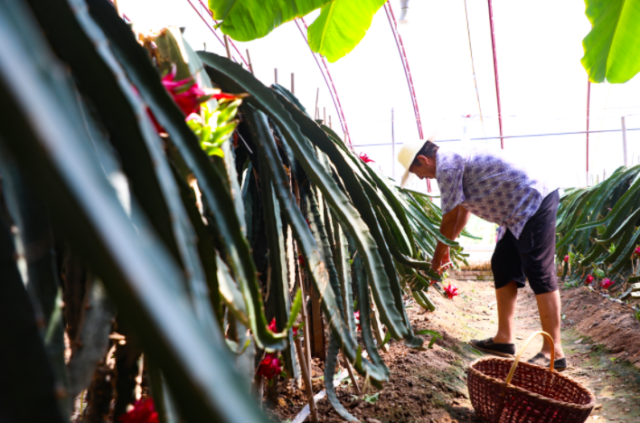 “火龙果是地地道道的热带水果,最初觉得在咱们这儿种植很难实现。后来通过外出‘取经’,购买幼苗试种,经过不断摸索实践,没想到真的成功了。我这一亩大小的棚,亩产近千斤,还能实现一年四季7、8茬的成熟周期。”裴耀金介绍道。