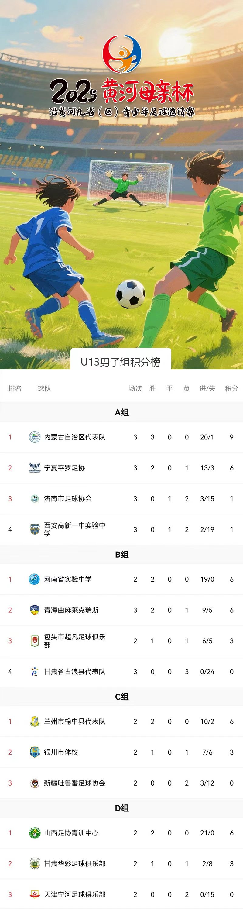 2025“黄河母亲杯:截至8月6日积分榜(男子组)