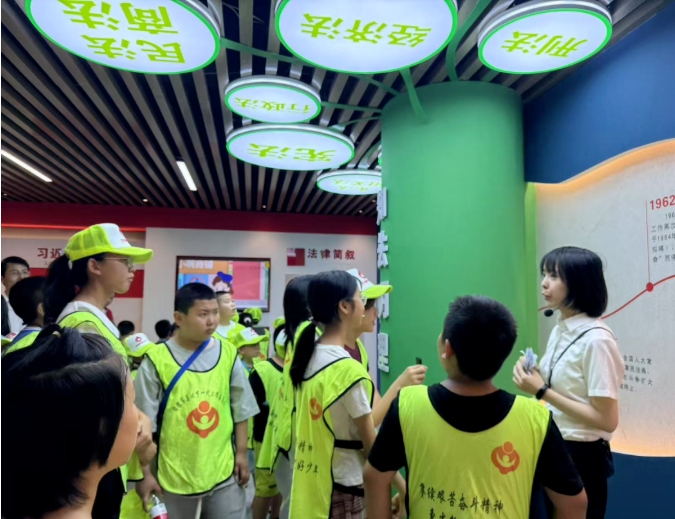 活动当天,孩子们带着好奇与期待踏入实践中心,在讲解员的引导下有序参观序厅、普法区、警示教育区、安全教育区和习法区。通过一幅幅生动的图片、一个个真实的案例,直观地了解了我国法治建设的历程,从古代的法律制度到现代法治体系的不断完善,在历史的长河中感受到法治的力量。